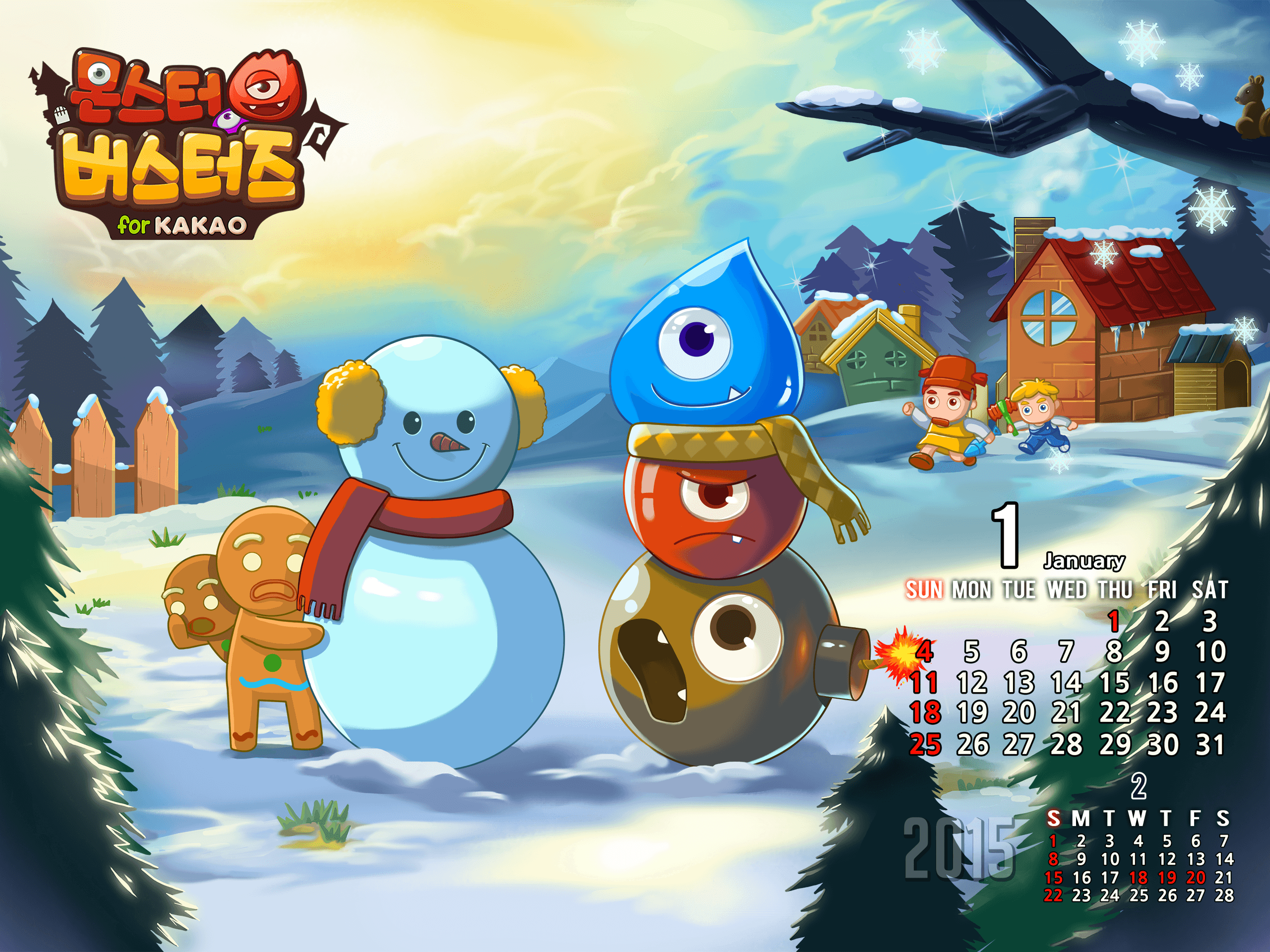 사랑스런 몬스터 버스터즈 12월 바탕화면으로