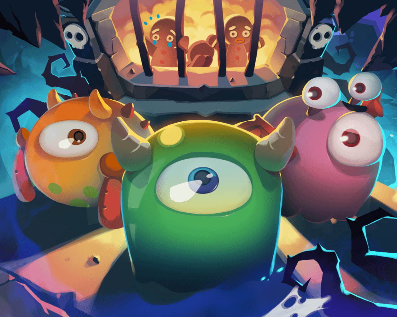 비밀의 문을 지나 컴컴한 동굴로 입장해서 꼬마쿠키들을 구해주세요!